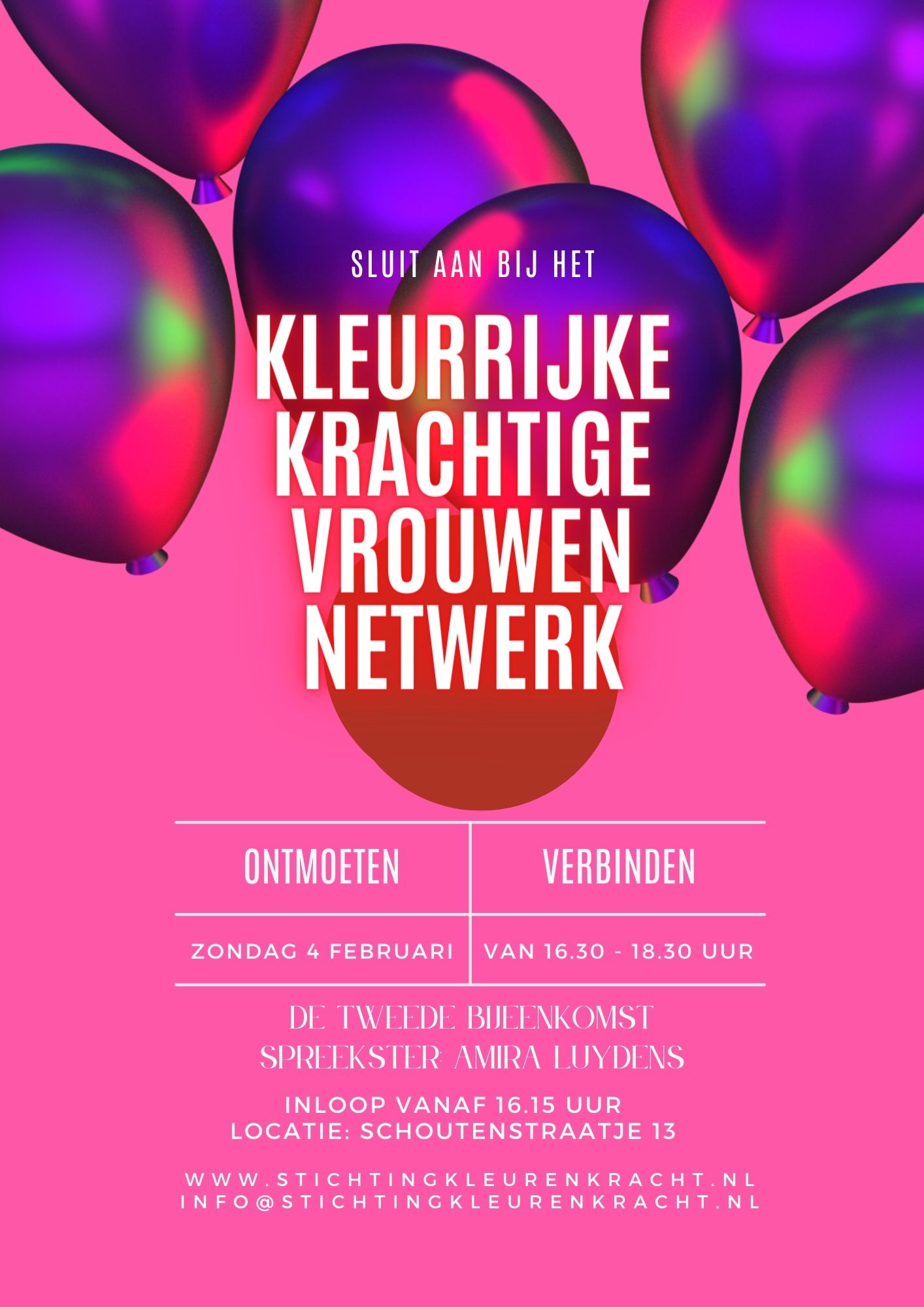 Op 7 januari starten we met het Kleurrijke Krachtige Vrouwennetwerk. De eerste bijeenkomst is verkenning, daarna zorgen we elke maand voor een interessante spreker. Ontmoet andere vrouwen, verbind, vertel jouw verhaal en verbreed je netwerk!